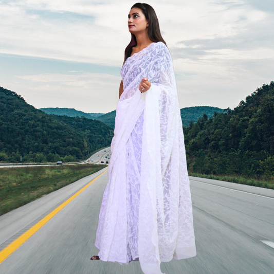 KURTIVERSE Women Chikankari Hand Embroidery Saree Blouse,White