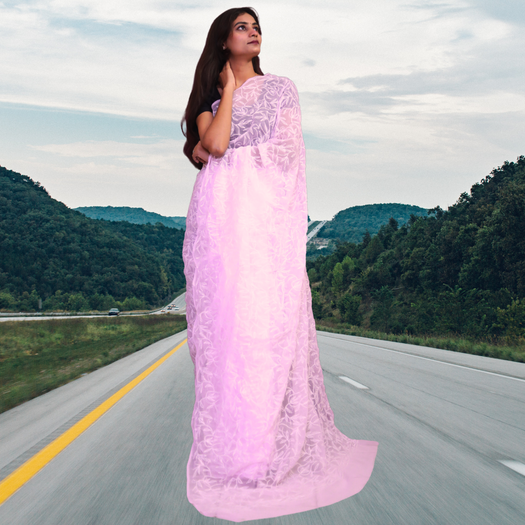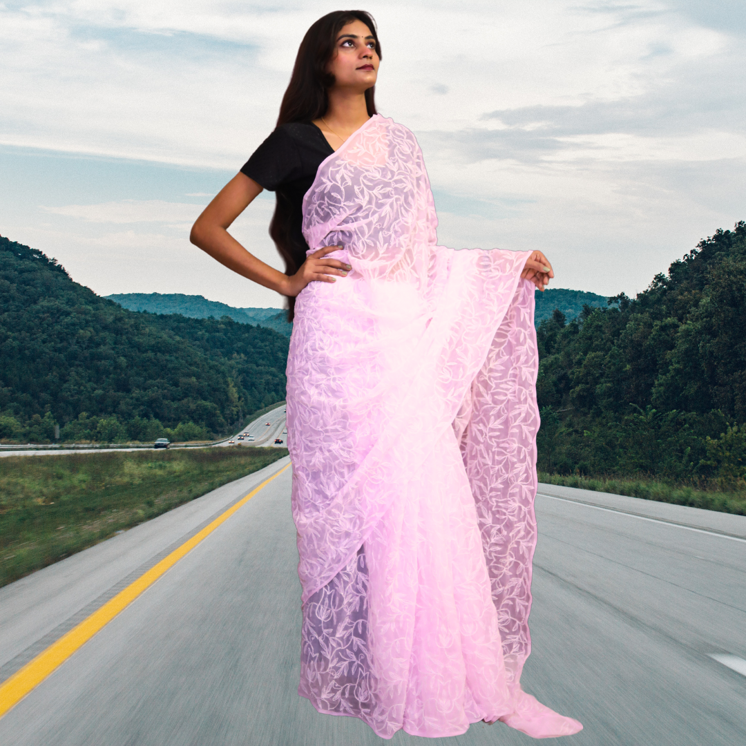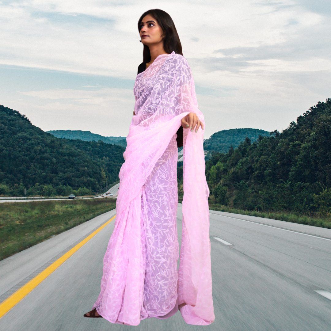 KURTIVERSE Women Chikankari Hand Embroidery Saree Blouse,Pink