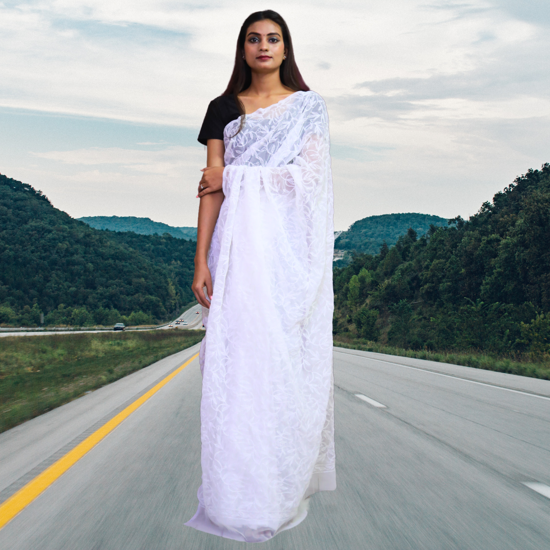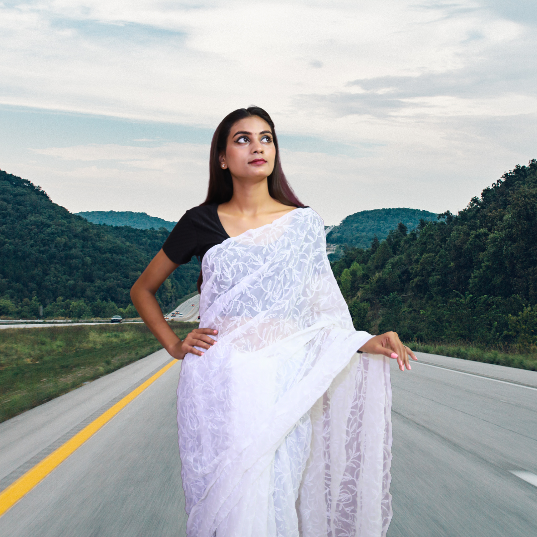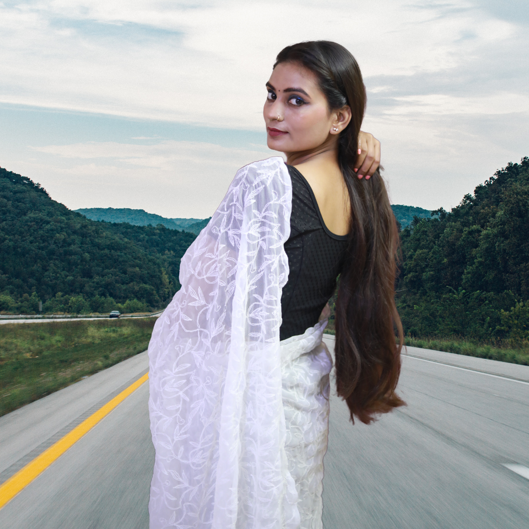 KURTIVERSE Women Chikankari Hand Embroidery Saree Blouse,White